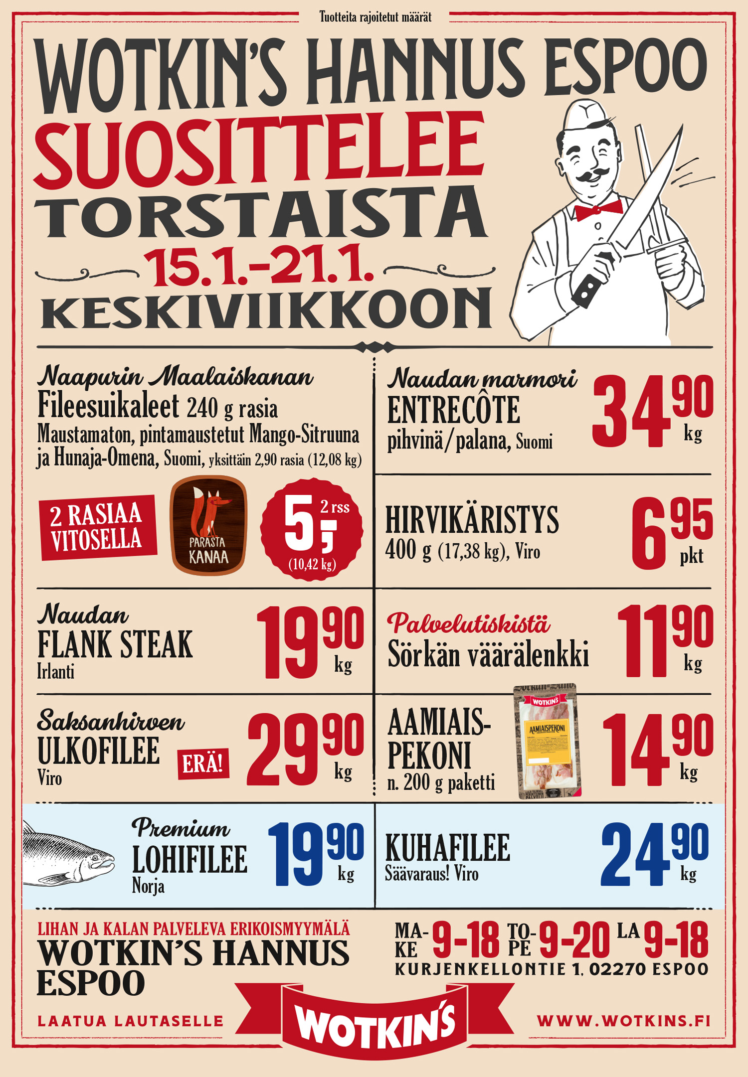Espoon Hannuksen myymälämme palvelee maanantaista lauantaihin Lidlin naapurissa. Myymälästä löydät palvelevan liha- ja kalatiskin, korkealuokkaiset oman tehtaan jalosteet ja keittiön maukkaat kotiruoat. Sen lisäksi paljon muita uusia herkkuja.