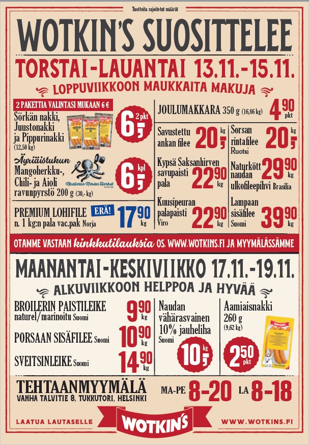 Tukkutorilla vuodesta 2000 toiminut, maaliskuussa 2021 täyden remontin läpikäynyt tehtaan­myymälämme tarjoaa kattavan kokonaisuuden lihaa ja lihajalosteita. Myymälän seinän takana valmistamme makkarat, leikkeleet, kylmäsavutuotteet, paistamme kinkut, teemme valmisruoat ja valmisruokakokonaisuudet. Omassa lihan­leikkaamossa leikkaamme luuttomaksi mm. suomalaista nautaa ja lammasta. Moni onkin yllättynyt, että kaikki toiminnot ovat saman katon alla. Tervetuloa Sörkän sydämeen. Täällä sinua palvelee motivoi­tunut, ammattitaitoinen henkilökuntamme maanantaista lauantaihin.